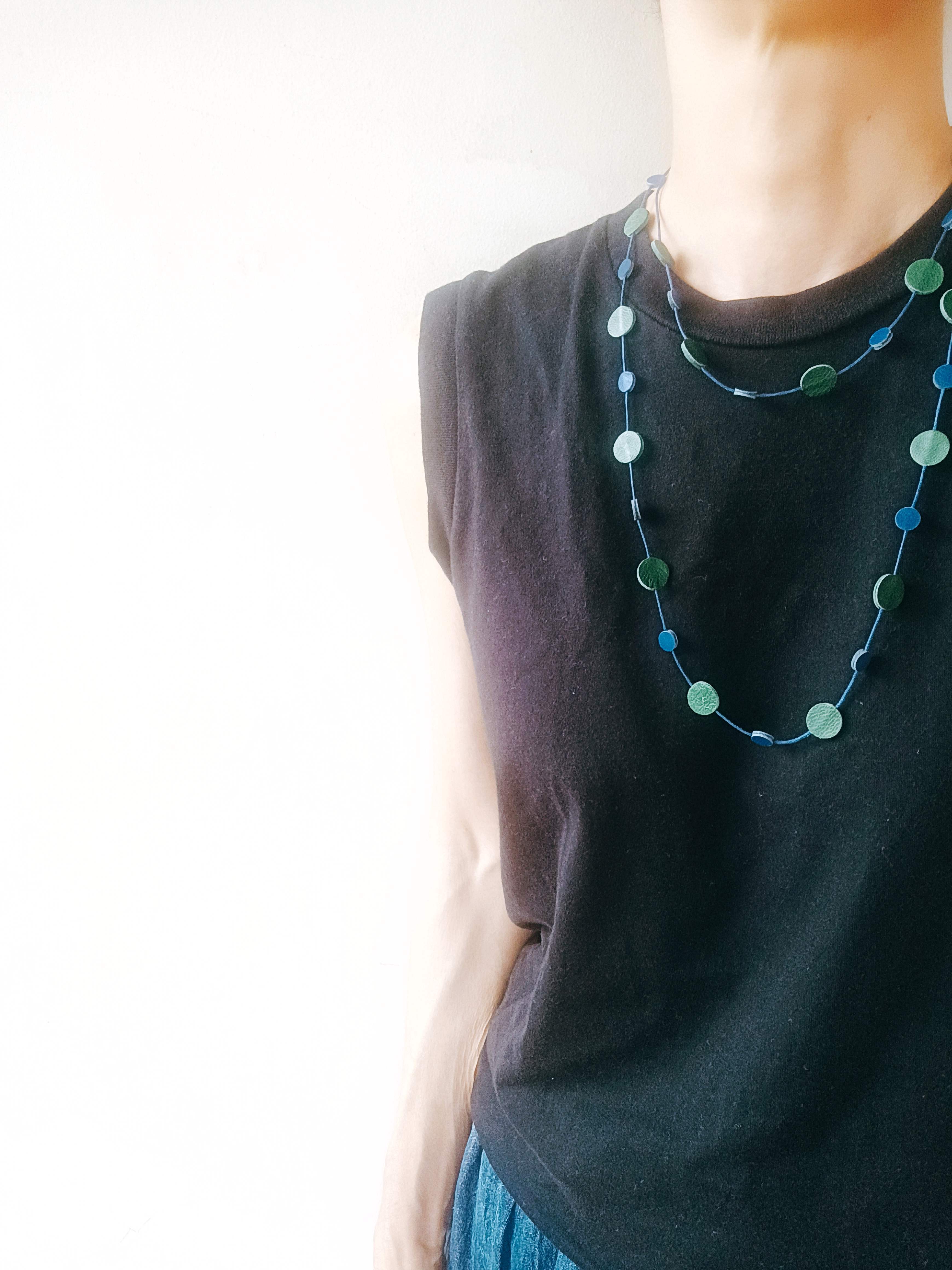 人気の大小のdotが連なるレザーネックレスに、華奢なコットンストラップを使ったタイプが登場。