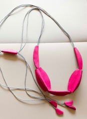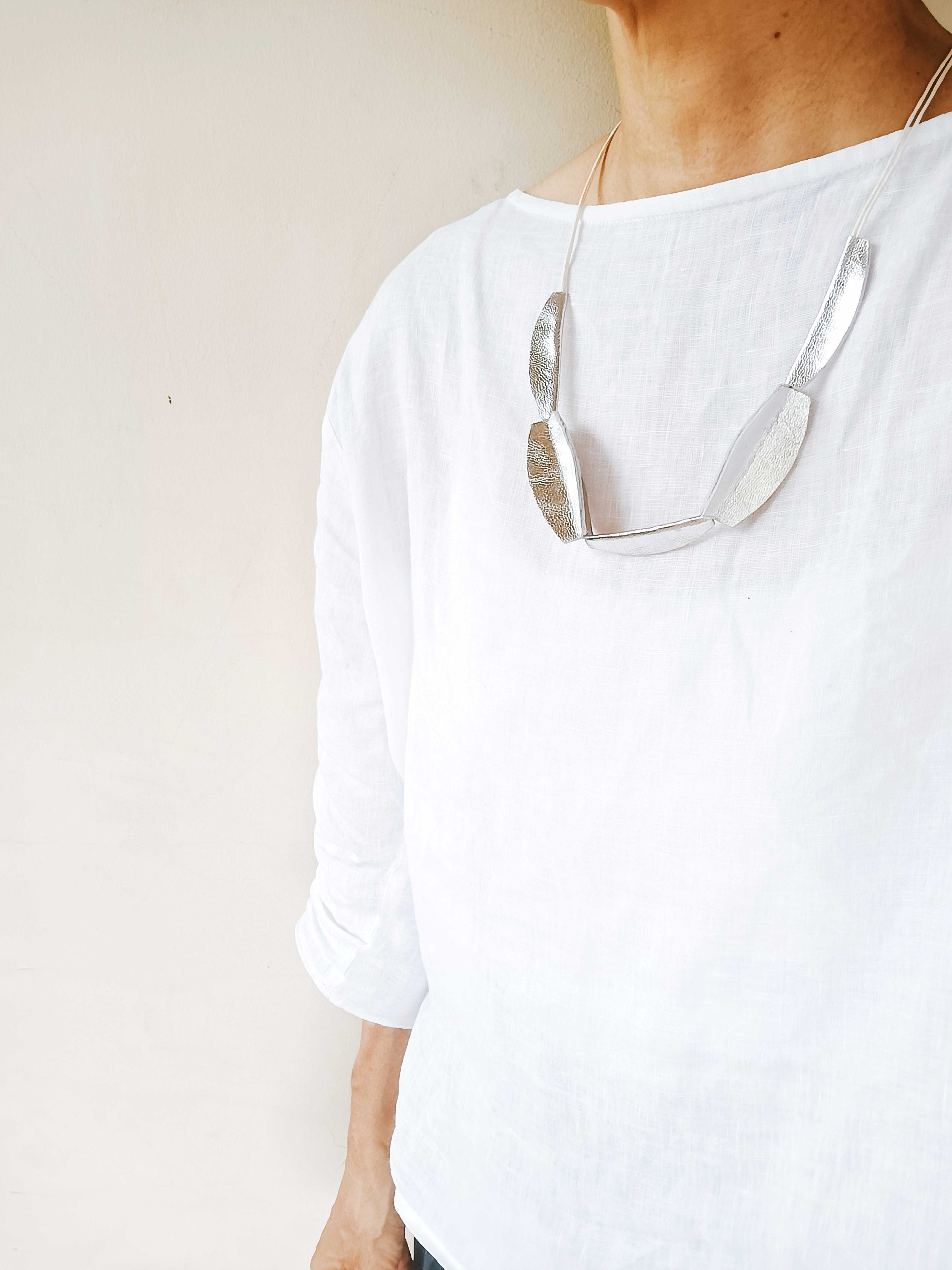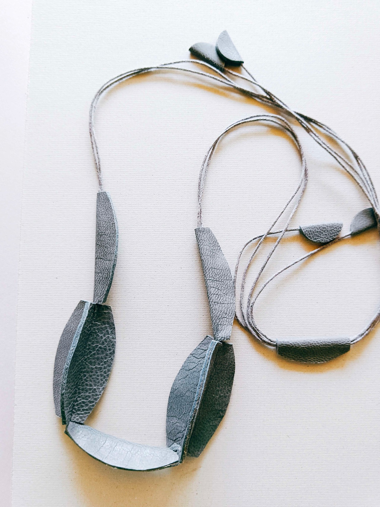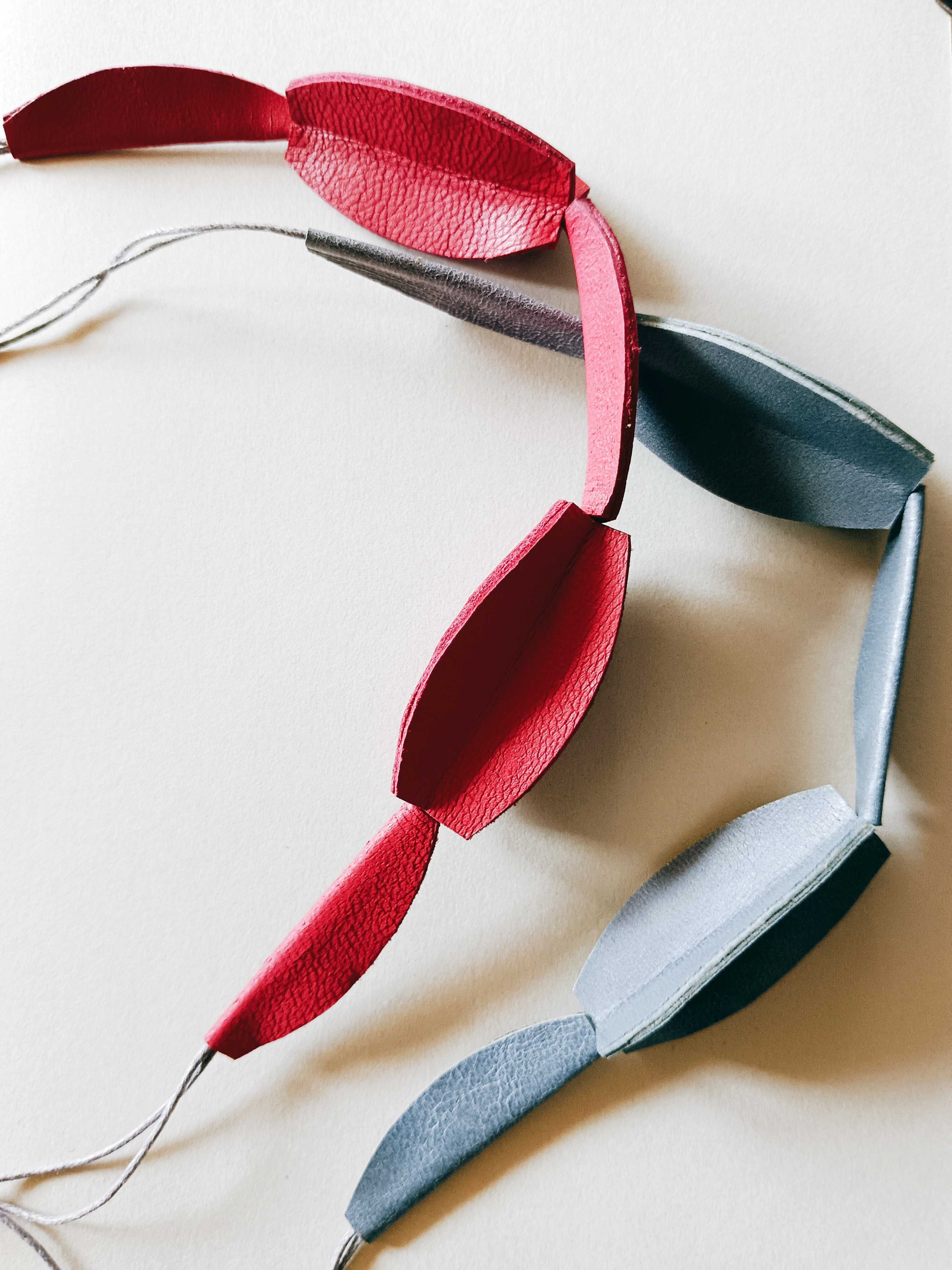 3枚の革を一つ一つ丁寧に貼り合わせて一つのパーツが生まれる、手間と時間をたっぷりかけて、一つのネックレスをお作りしています。