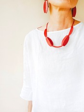 ドットのネックレスから始まり、シンプルな形や、インドネシア特有の形などをデザインに取り込み、ユニークなピアスがどんどん生まれ、その『軽さ』と季節を問わずに使える便利さに加え、革独特の『存在感』は、一度付けると手放せない!と、たくさんの方に喜ばれています。是非この機会にnananのアクセサリーを通して、『革』という素材の持つ面白さを皆さんに味わっていただけたら幸いです(^^)