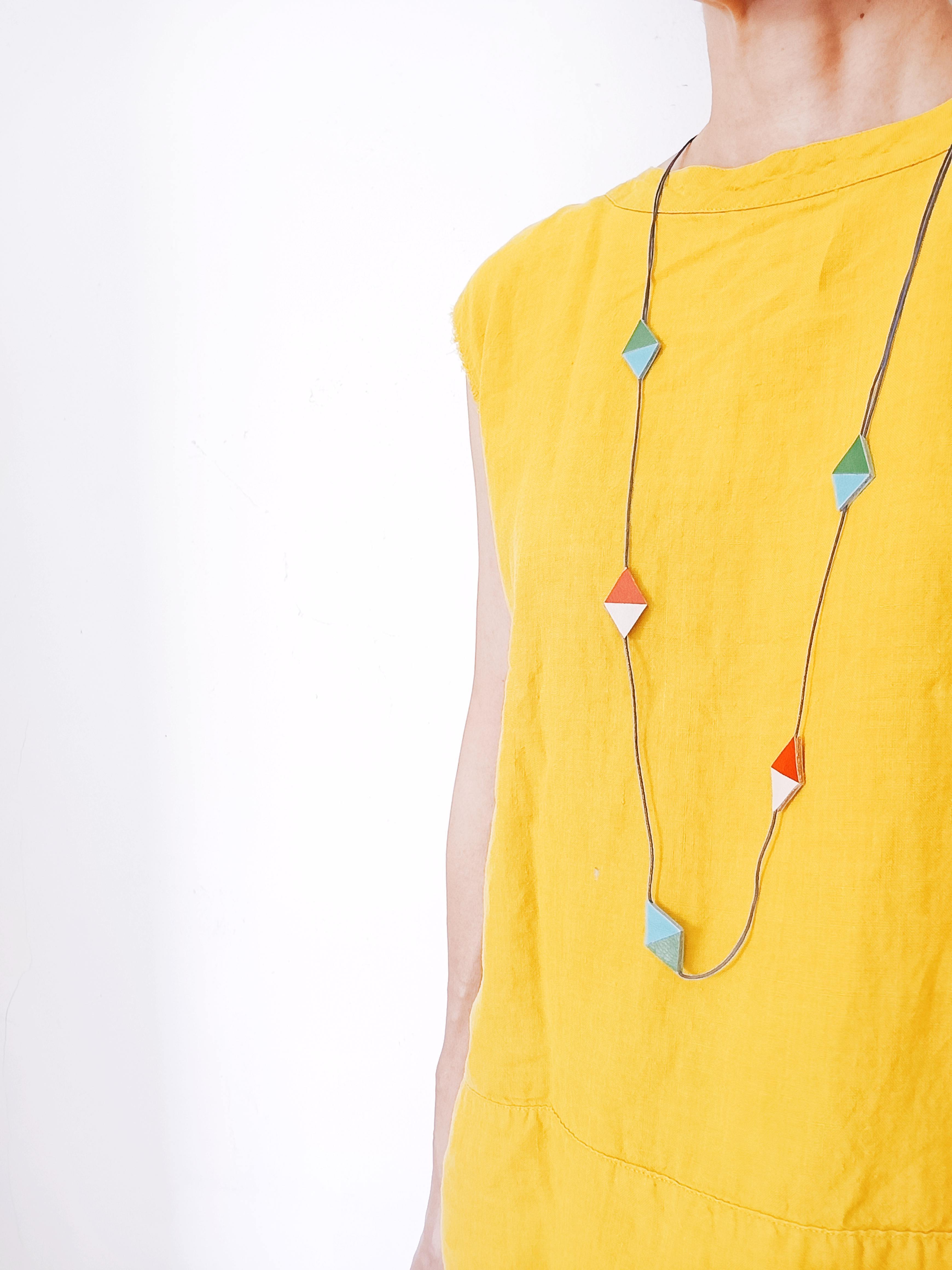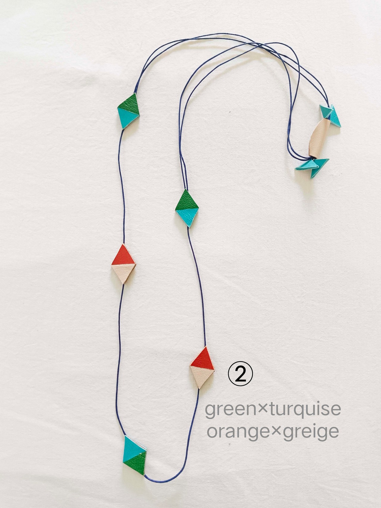 革の色とコットン紐の組み合わせで色んな表情を見せてくれるネックレス。
