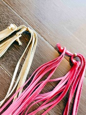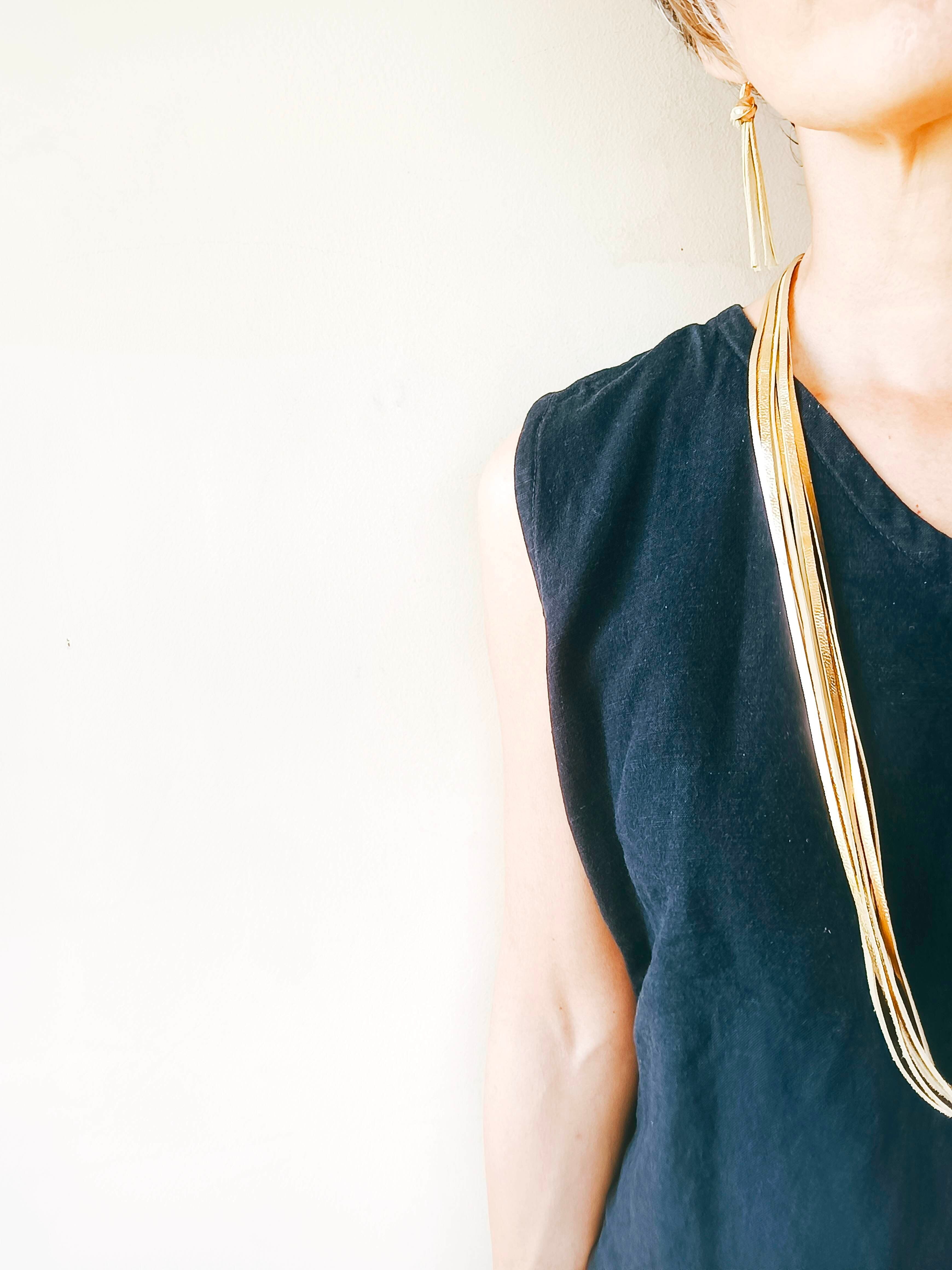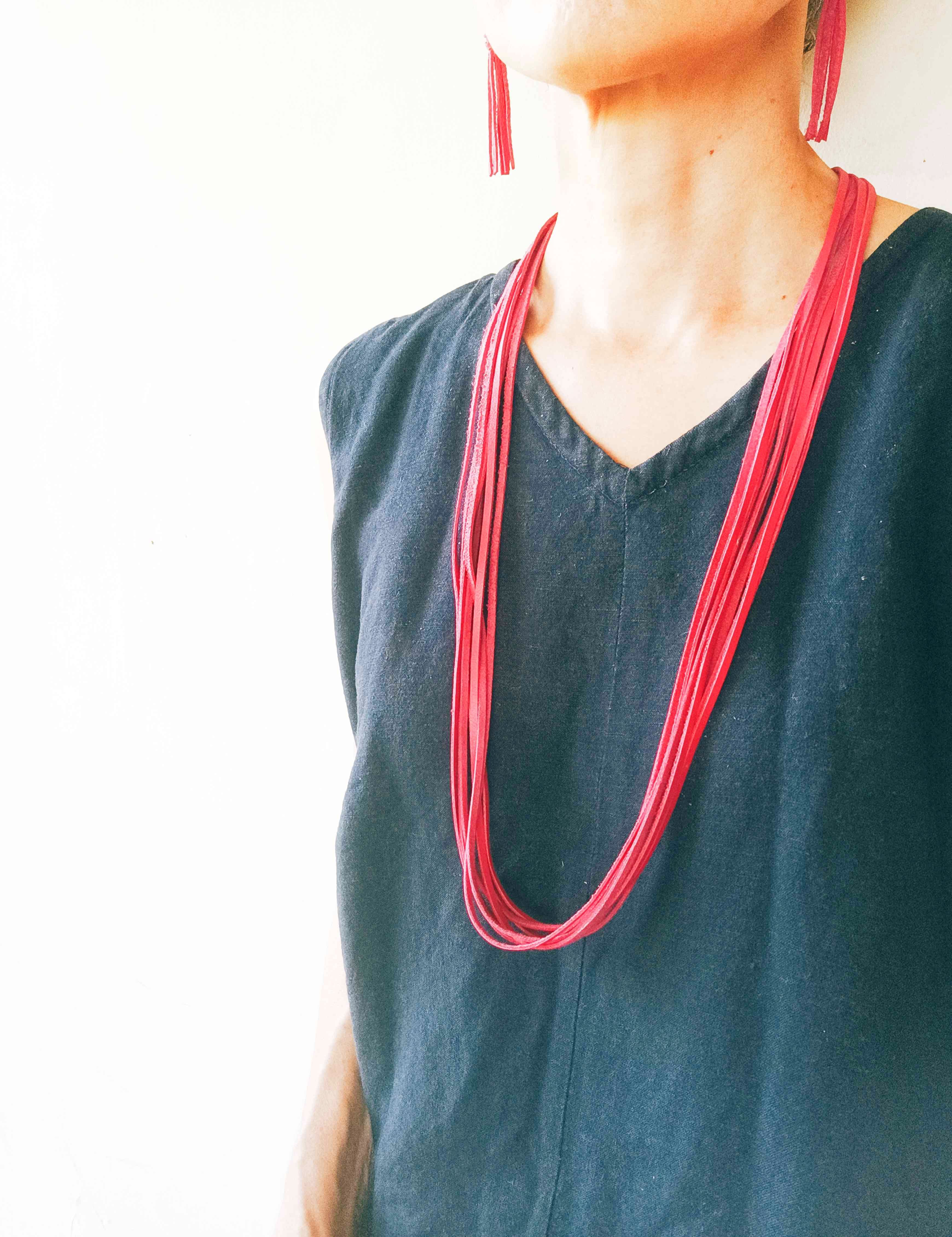以前から作っていたフリンジのレザーネックレス、ふと思いついて、試しに短めにしてみたら、思いの外フリンジにボリュームが出て