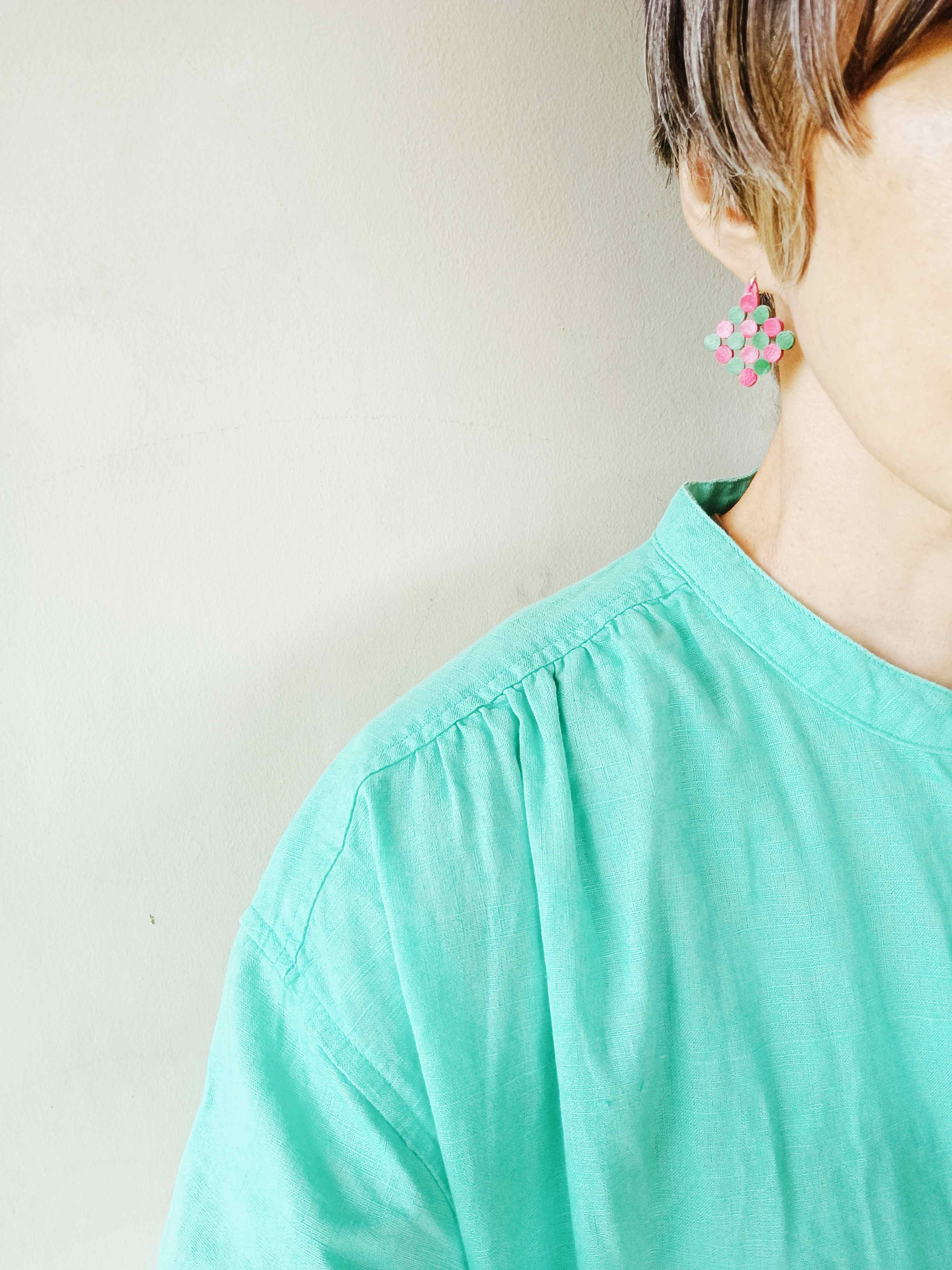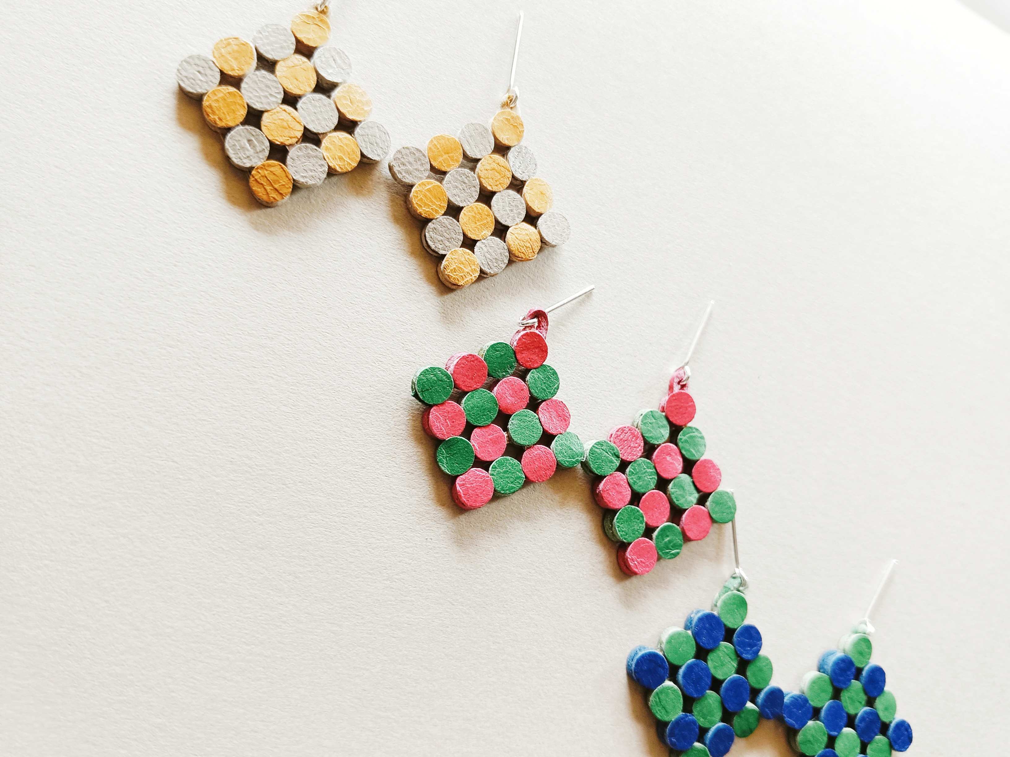 ドットのネックレスから始まり、シンプルな形や、インドネシア特有の形などをデザインに取り込み、ユニークなピアスがどんどん生まれ、その軽さと季節を問わずに使える便利さに加え、革独特の存在感は、一度付けると手放せない!と、たくさんの方に喜ばれています。