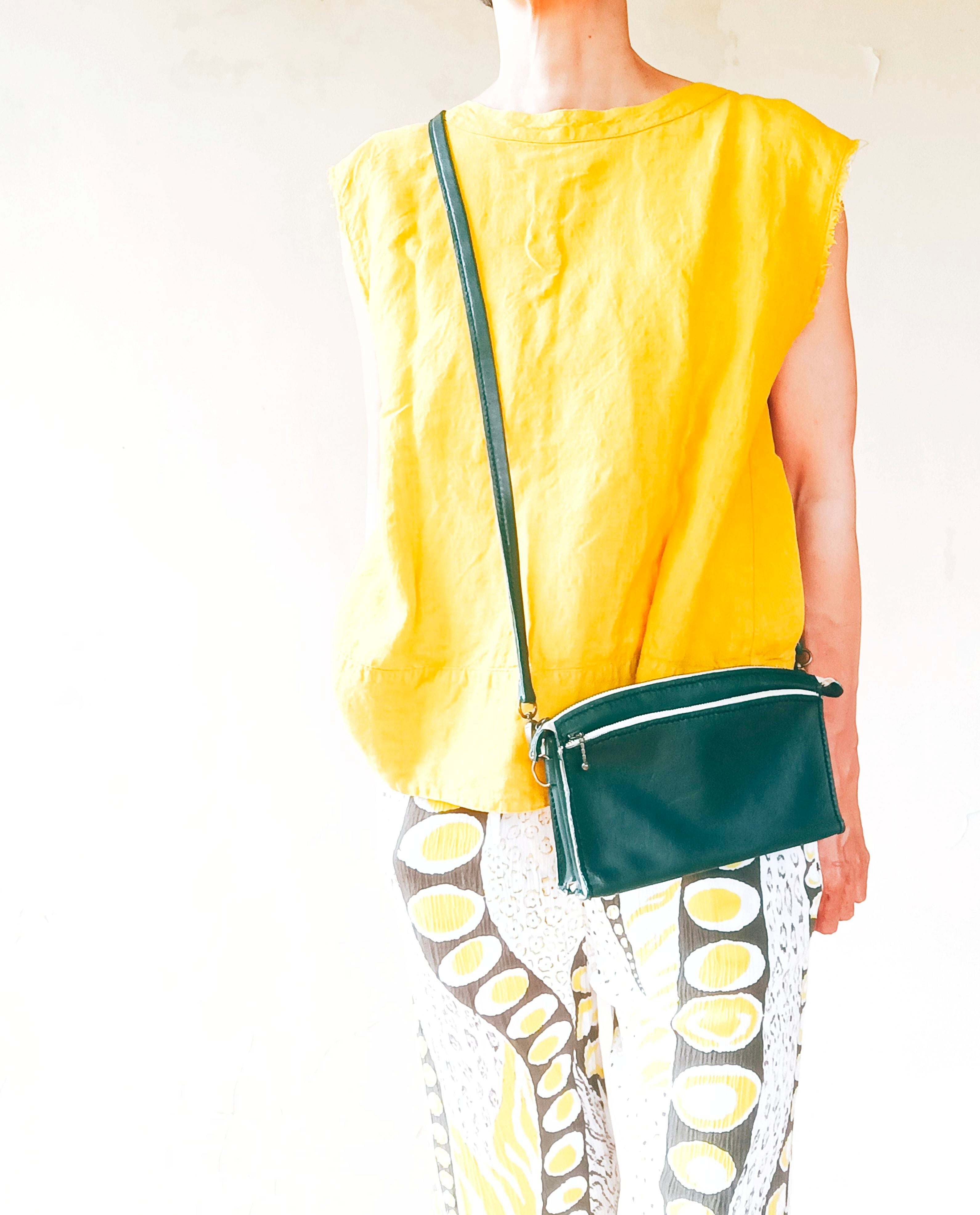 お色は季節を問わずに使えるダークグリーン、その他、キャメルやターコイズなどでも製作可能です。普段使いはもちろん、ご旅行にも、手の空くお財布ショルダー、とっても重宝してくれます!