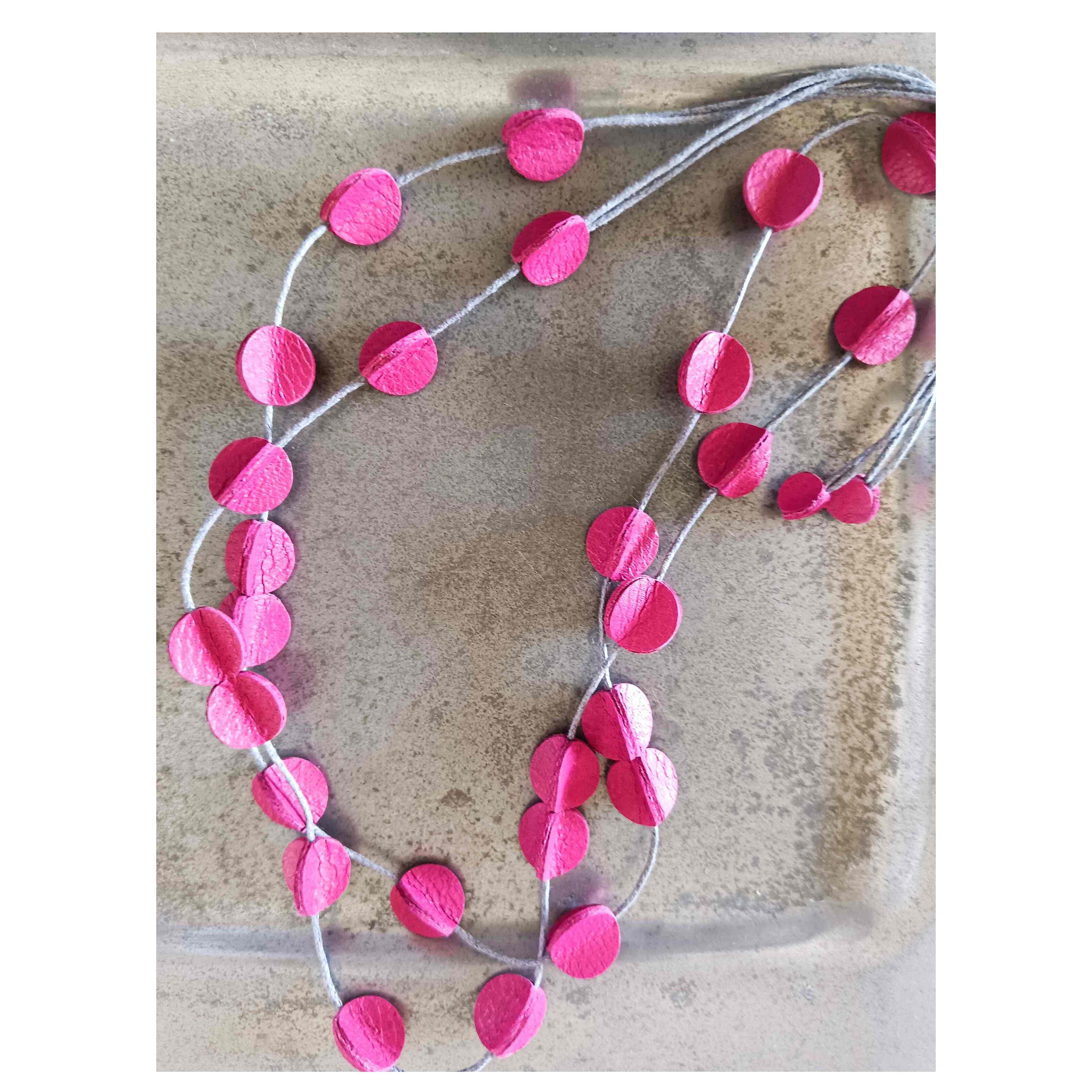 3枚の革を一つ一つ丁寧に貼り合わせて一つのパーツが生まれる、バリ島の職人さんが、手間と時間をたっぷりかけて、一つのネックレスお作りしています。